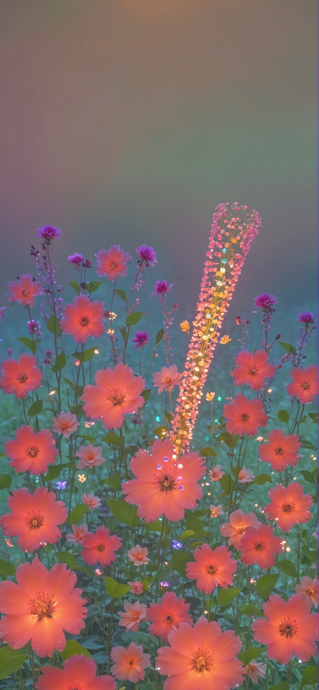 粉色波斯菊田野的魔幻光影 low-angle 近摄艺术