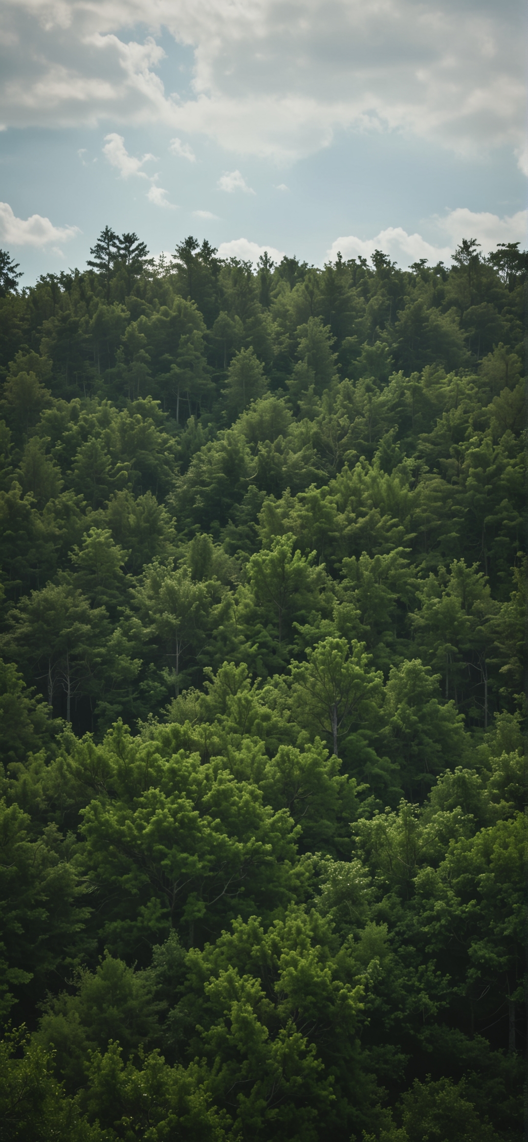多云天气下浓密落叶林俯视摄影