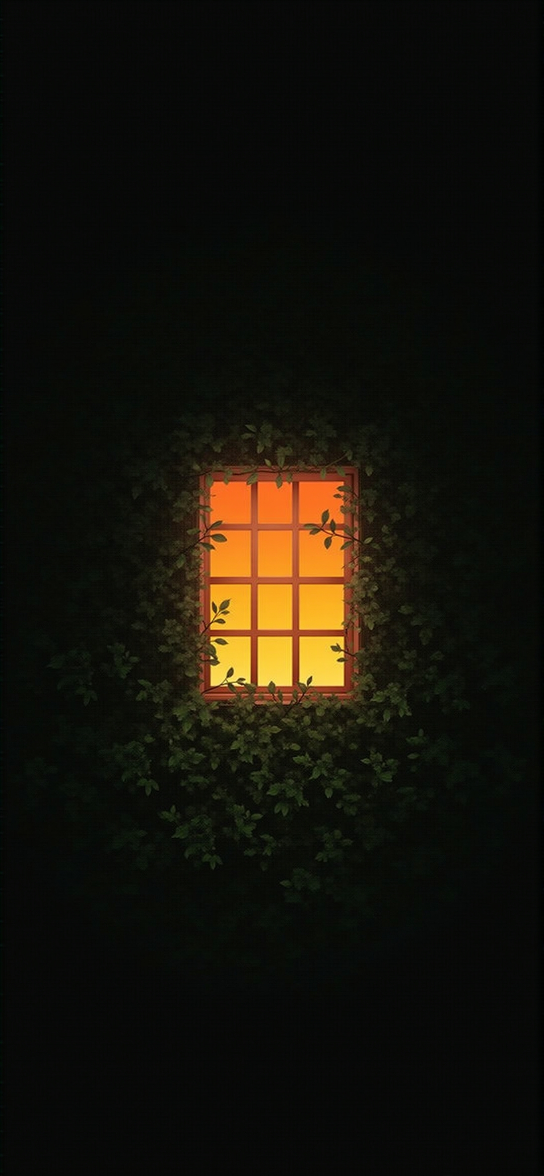 落日余晖下的神秘窗格:橙辉照亮九窗格与昏暗常春藤壁