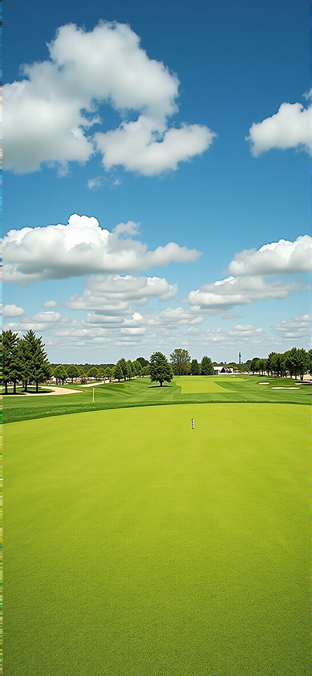 晴朗日下茂盛高尔夫球场的低角度绿茵壮丽风光