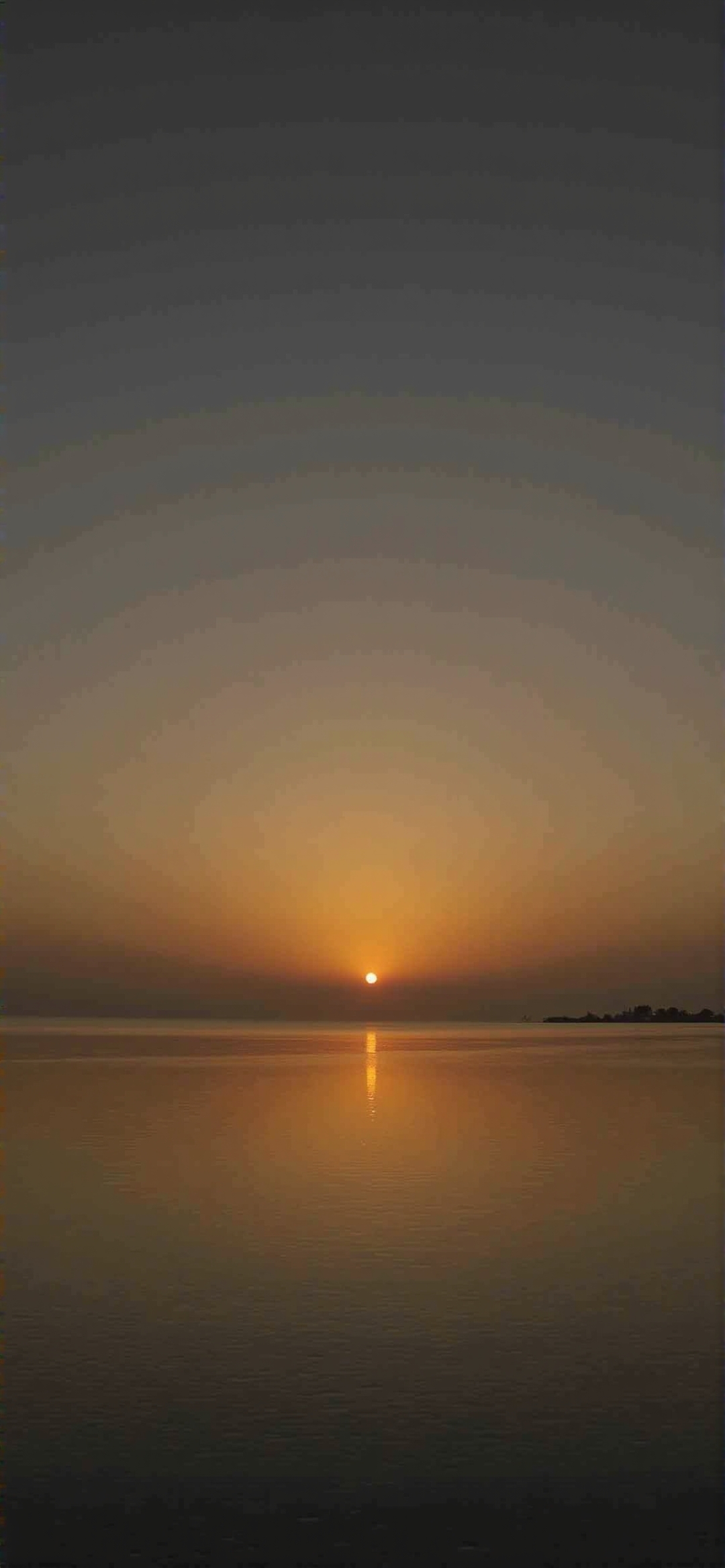 夕阳余晖下的广阔水域摄影:金球落日映照宁静水面