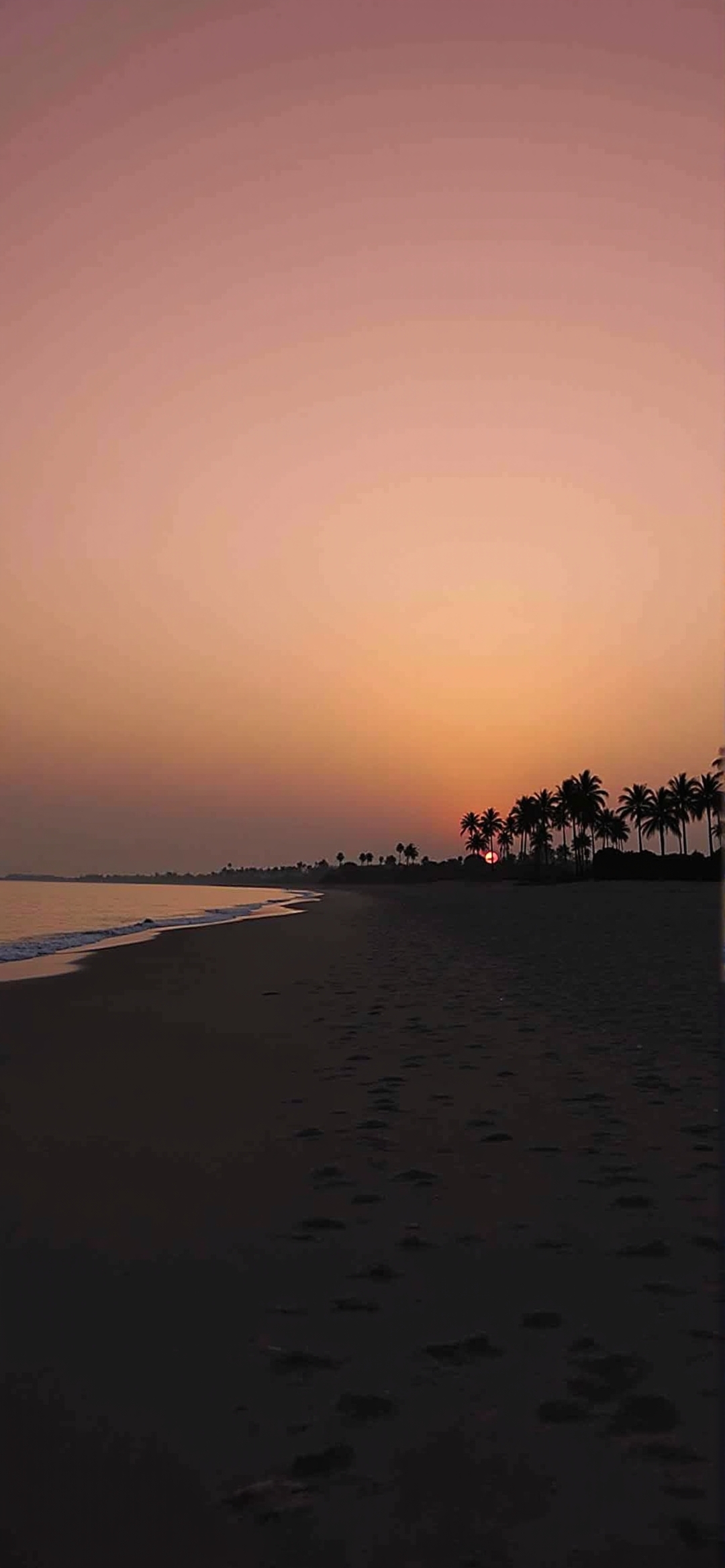 热带日落海滩美景:火红夕阳映衬幽深紫霞