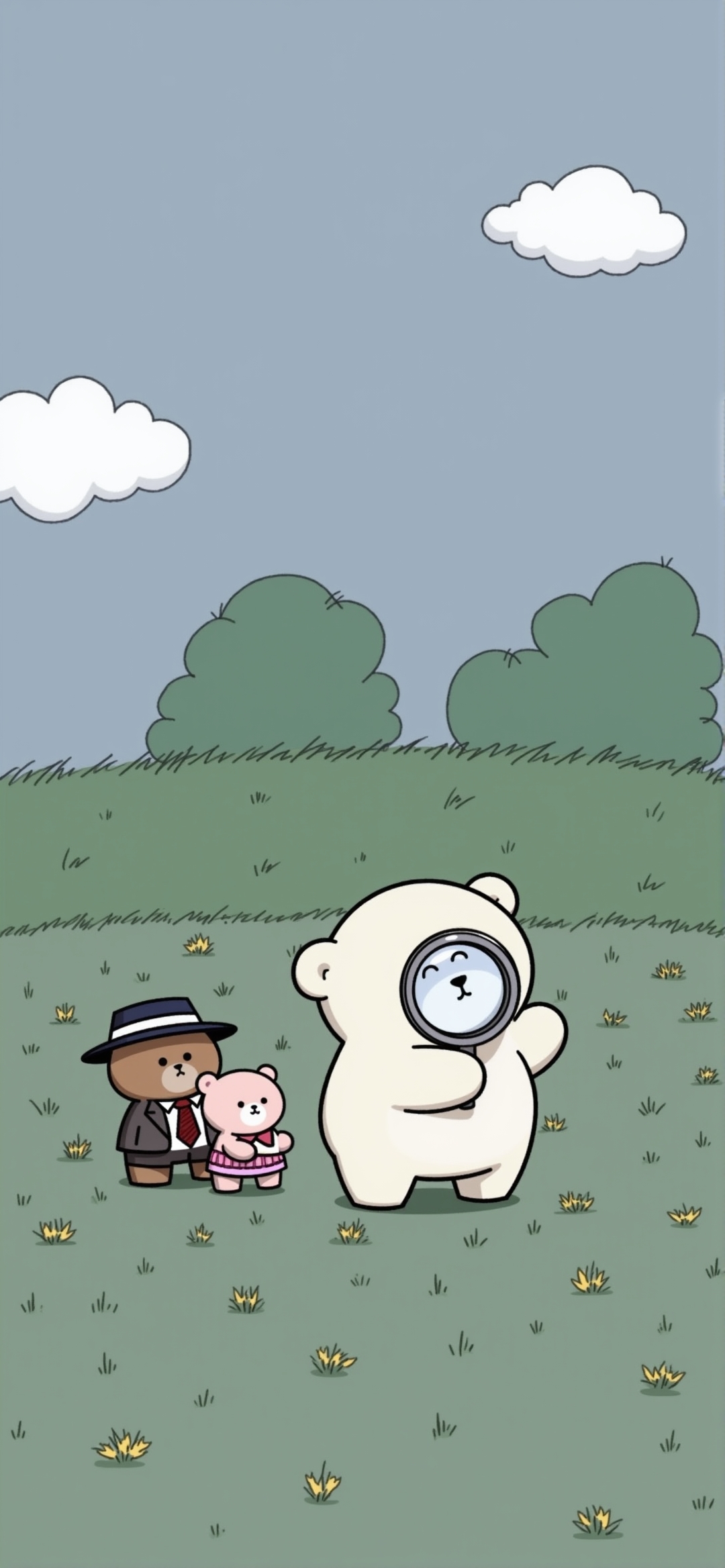 简约户外场景中三只卡通熊的创意插画