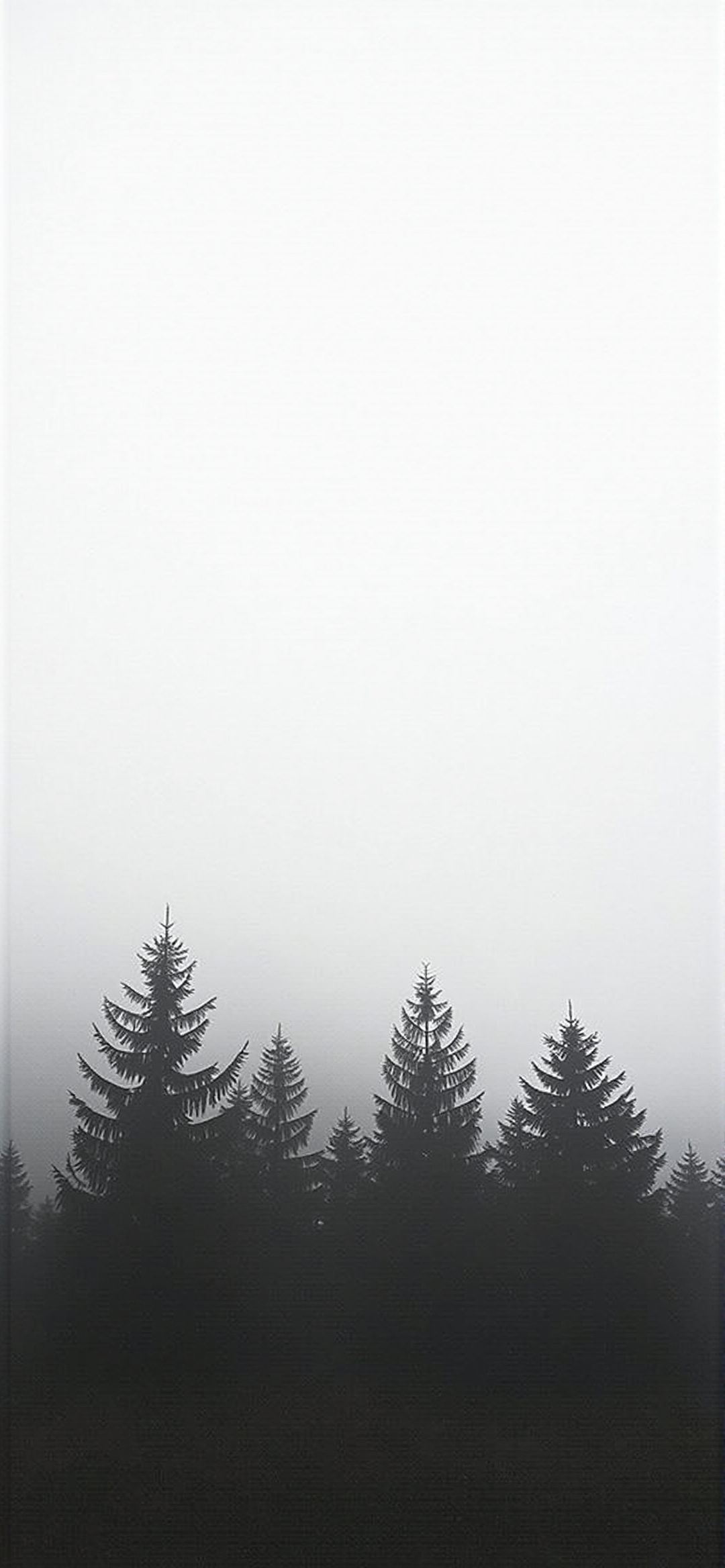 松树的剪影映衬着雾蒙蒙的天空。这张照片以黑白为主,在明亮的白色雾中,树木呈现出黑色的剪影。雾模糊了背景,创造了一个抽象和极简主义的构图。这张照片唤起了一种神秘、宁静和大自然的崇高之美。缺乏细节和明暗之间的鲜明对比强调了图像的图形质量。