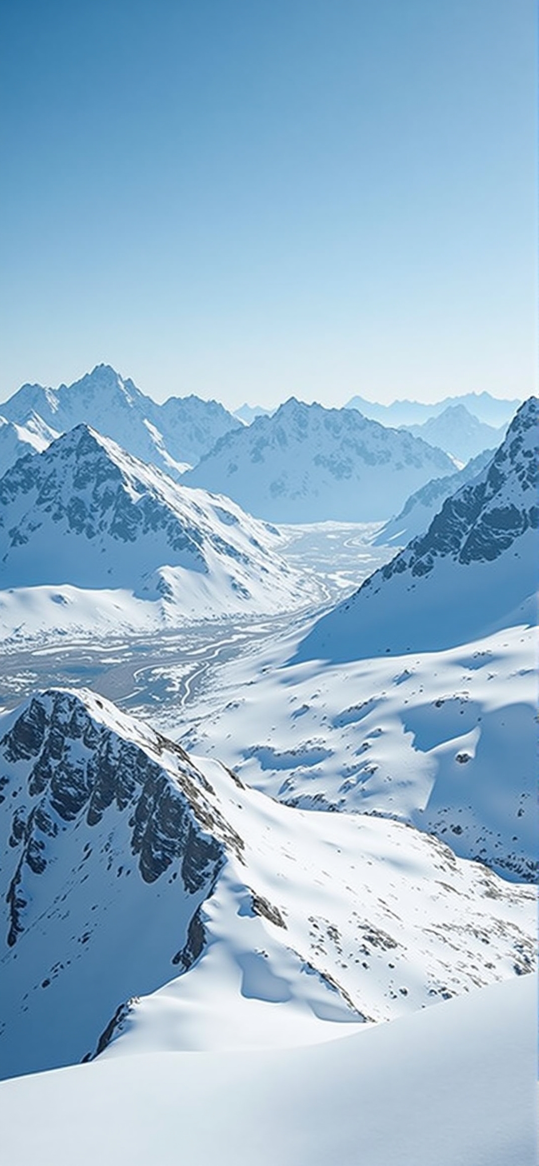 雪峰壮丽:蓝天之下全景高山风光摄影