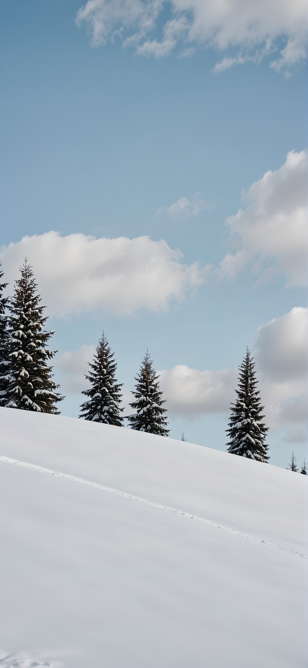 雪覆盖山丘的宁静冬日风光:简约与平和的视觉旋律
